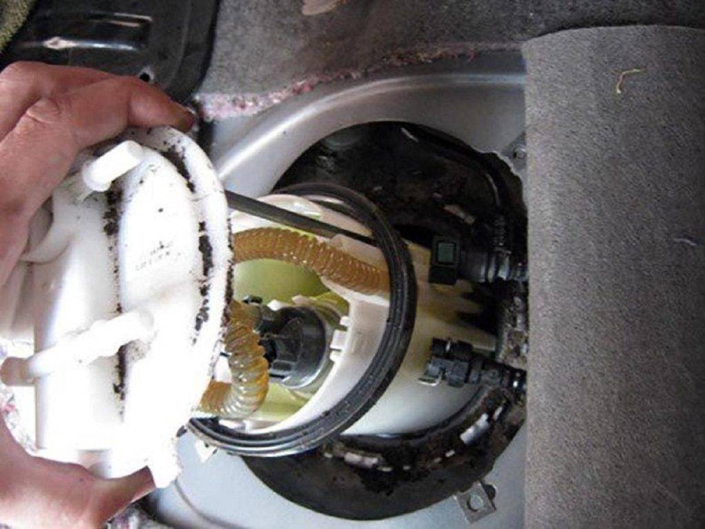 - Разборка, снятие бензинового насоса и замена сетчатого уловителя.