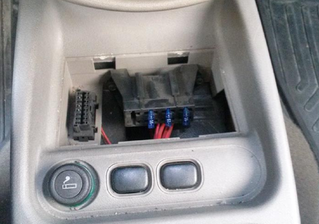 Предохранитель электрической цепи бензонасоса находится под крышкой на центральном тоннеле
