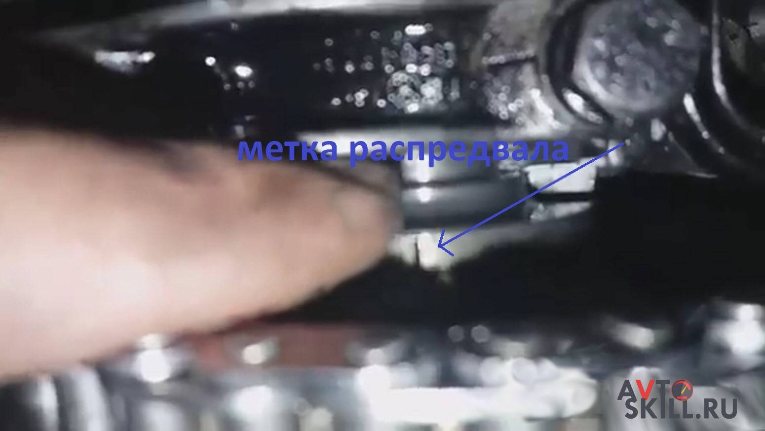 Если индикатор отсутствует, двигатель нужно прокручивать вручную на 15 градусов до верхней мертвой точки на первом цилиндре. Два кулачка распредвала должны оказаться направлены вверх. Они будут немного не доходить до ВВТ, на шкиве будет 15 градусов до ОТ. То есть, первый поршень на первом цилиндре начинает сжатие, и в этом момент происходит впрыск. Если шкалы с градусами нет, придется повернуть коленвал на глаз и поставить метку.