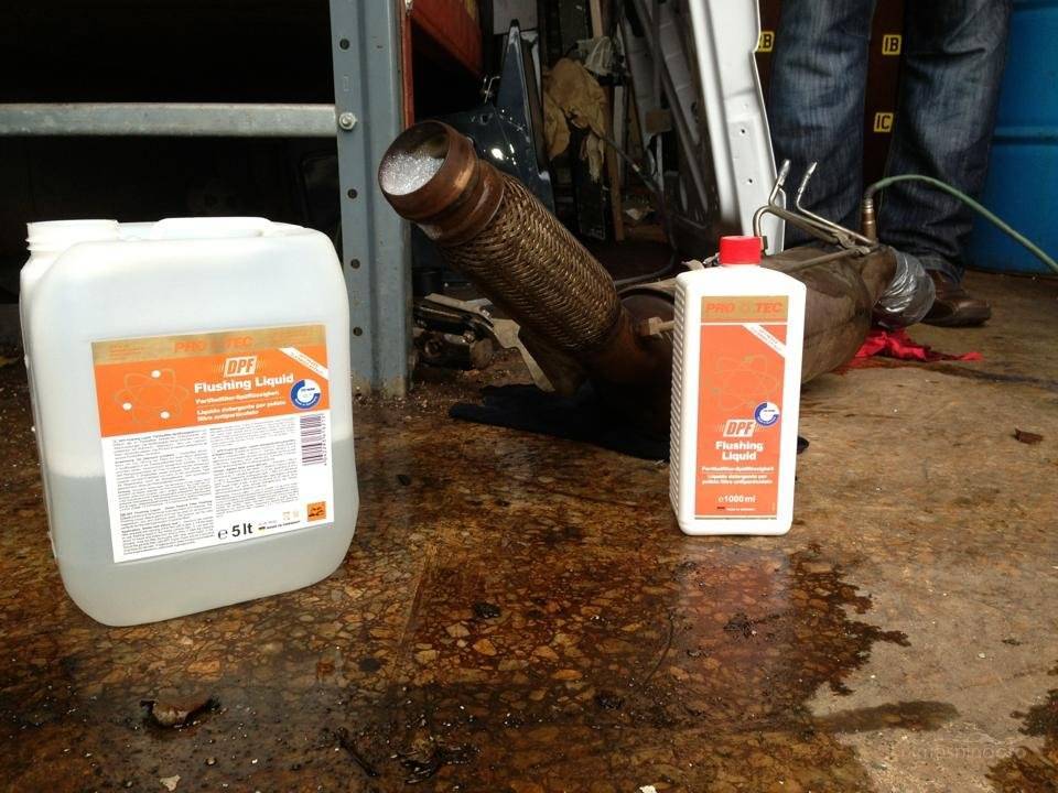 Второй метод заключается в полном снятии фильтра и его промывке. Для начала необходимо снять фильтр с системы и открыть его. Далее его необходимо промыть посредством специальных средств вроде DPF Cleaner. Они устраняют остатки сажи и масла, в результате чего те легко устраняются под напором воды. Подобные очищающие средства смываются водой. Очистку можно дополнить специальными чистящими средствами вроде PRO-TEC DPFCatalyst Cleaner. Однако это зависит от ситуации.
