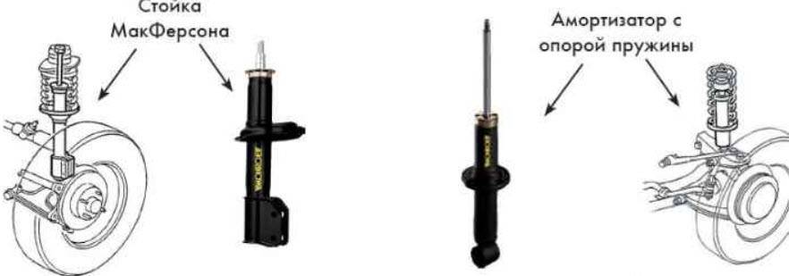 - Тогда как стойка подвержена боковой нагрузке, амортизатор только гасит вибрации;