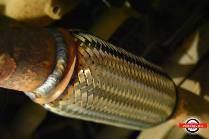 - Снимите подвесы вашего глушителя примерно от середины авто, включая крепежи у самого выхлопа. Может потребоваться смазка для демонтажа прикипевших элементов;