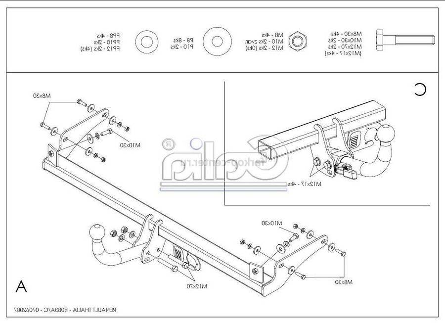 Предположим, что у вас есть Рено Логан 2014 года выпуска, то есть новое поколение. И вы выбрали себе подходящий фаркоп со всеми комплектующими, которые идут вместе с ТСУ при покупке. Остается загнать машину на яму, собрать набор отверток и ключей, и приступить к работе.