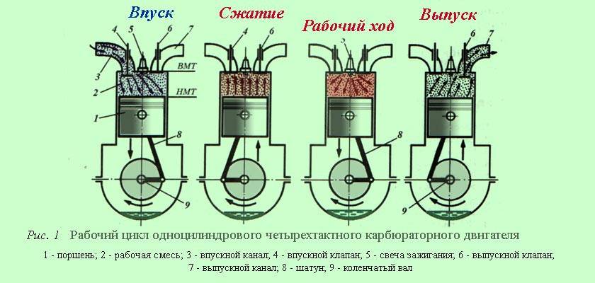 Основной цикл мотора подразумевает выполнение четырех основных тактов. Именно о них и пойдет речь дальше по тексту.
