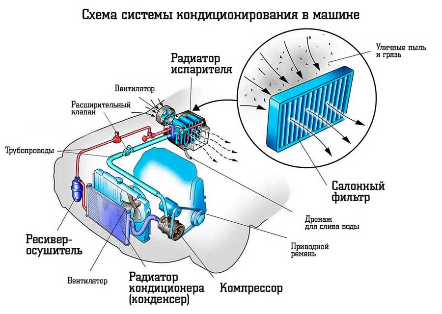 Автомобильный кондиционер – это сложное устройство, сердцем которого является компрессор. Последний, по сути, является насосом, который всасывает и нагнетает в систему хладагент (фреон Р134А).