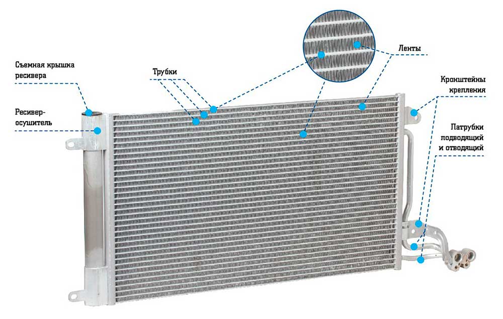 - Радиатор-конденсор (не путайте с радиатором охлаждения двигателя).
