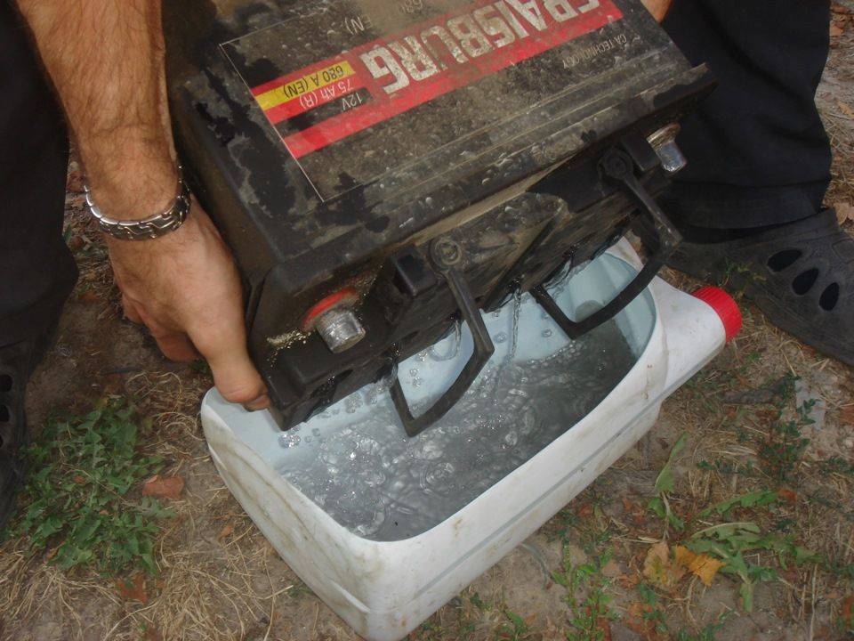 После того, как дистиллят закипит, напряжение немного снижается. Главная задача — поддержание кипения в аккумуляторе, однако не интенсивное. Плотность дистиллята со временем будет повышаться из-за растворения сульфата свинца в воде. Затем воду сливают и заливают новую, а батарею снова ставят на зарядку при небольшом напряжении.