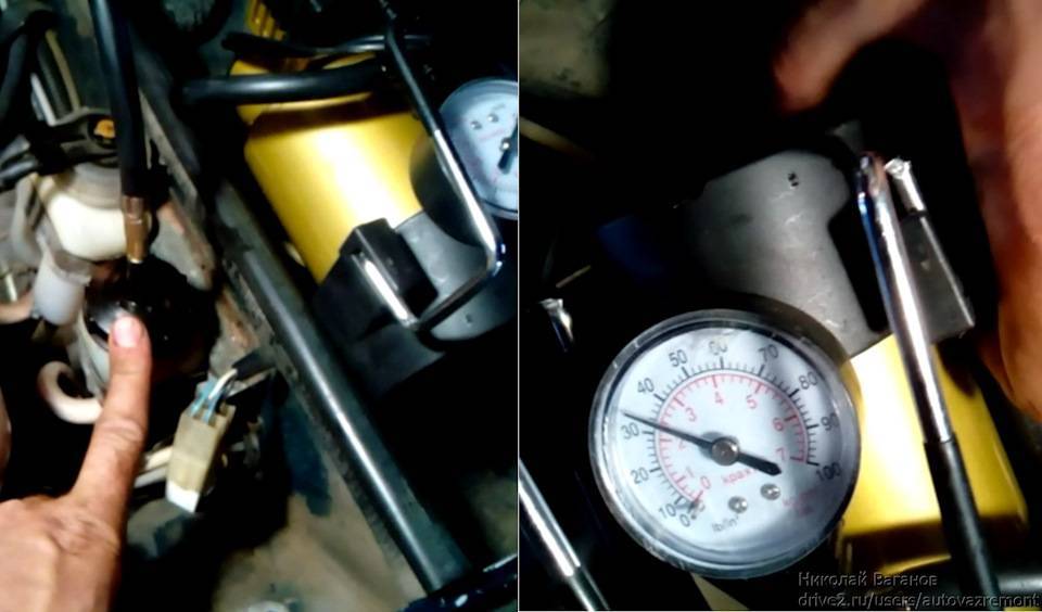 Есть и другой способ прокачки, более быстрый. Нужно создать давление внутри бачка сцепления — например, используя накаченную камеру от покрышки. В некоторых случаях, чтобы не возиться с камерой, достаточно дунуть через чистую марлевую тряпку в бачок. Обычно 2-3 наддувов хватает для прокачки гидравлического сцепления на «Жигулях».