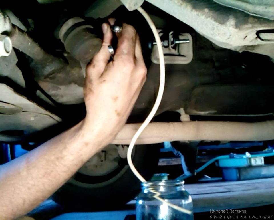 Советуем привлечь помощника. Один человек садится в машину, начинает качать педаль муфты. Второй внимательно следит за качеством жидкости и уровнем бачка.Уровень не должен опускаться чересчур низко, так как это приведёт к повторному завоздушиванию системы. Выжим педали происходит до тех пор, пока весь воздух не выйдет.