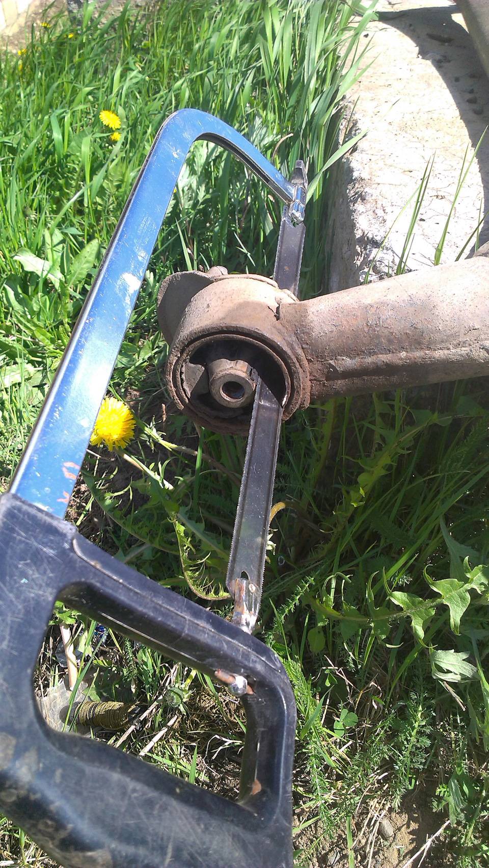 Ступицы открутились на удивление легко.В интернете посмотрел что если пропилить обойму то сайлентблок вылетает за несколько ударов, решил тоже так сделать.