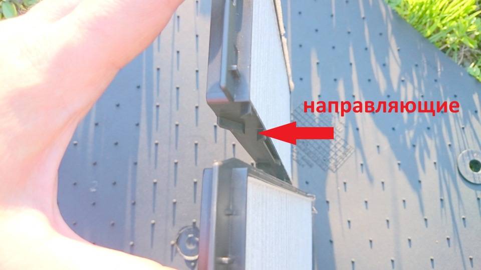 Устанавливая верхнюю часть, нужно попасть боковыми выступами в направляющие желобки, и задвинуть элемент вверх до упора.