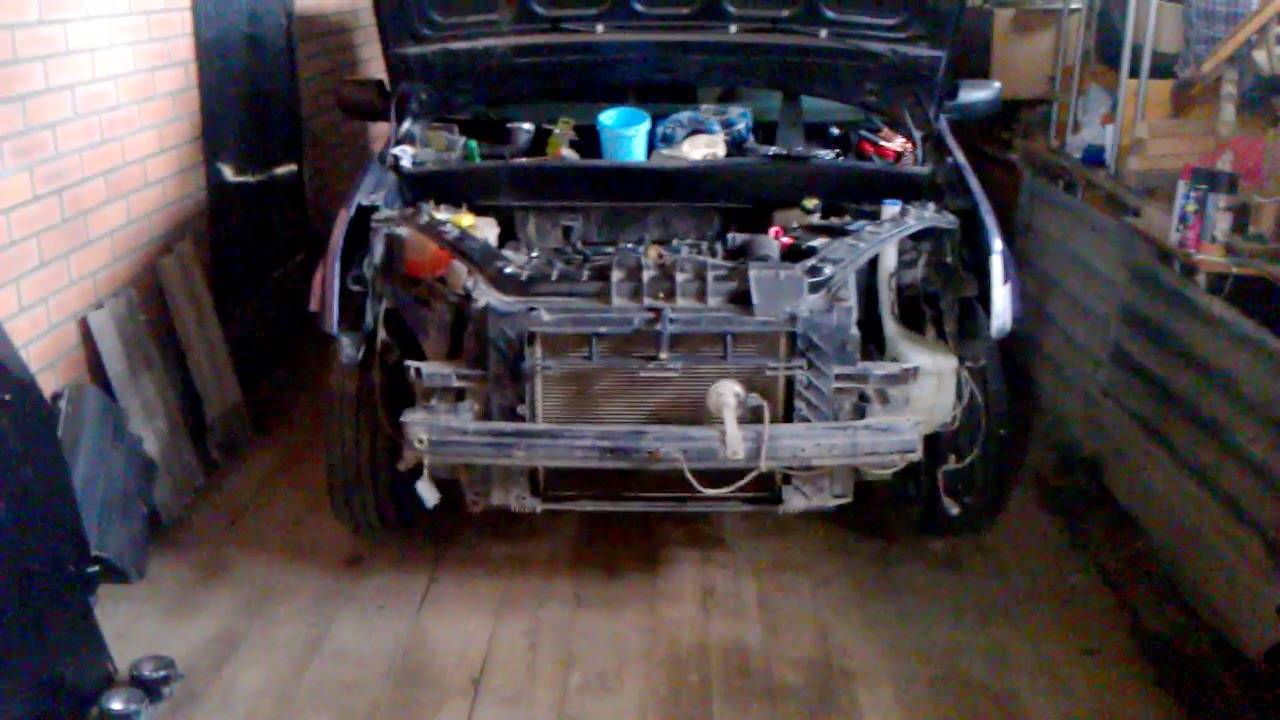 Открутите и снимите передний бампер. Далее необходимо демонтировать усилитель переднего бампера.