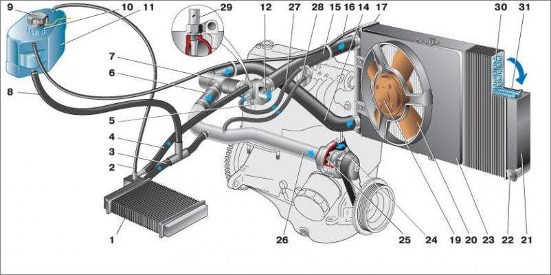 Принцип циркуляции жидкости в системе ВАЗ-2123