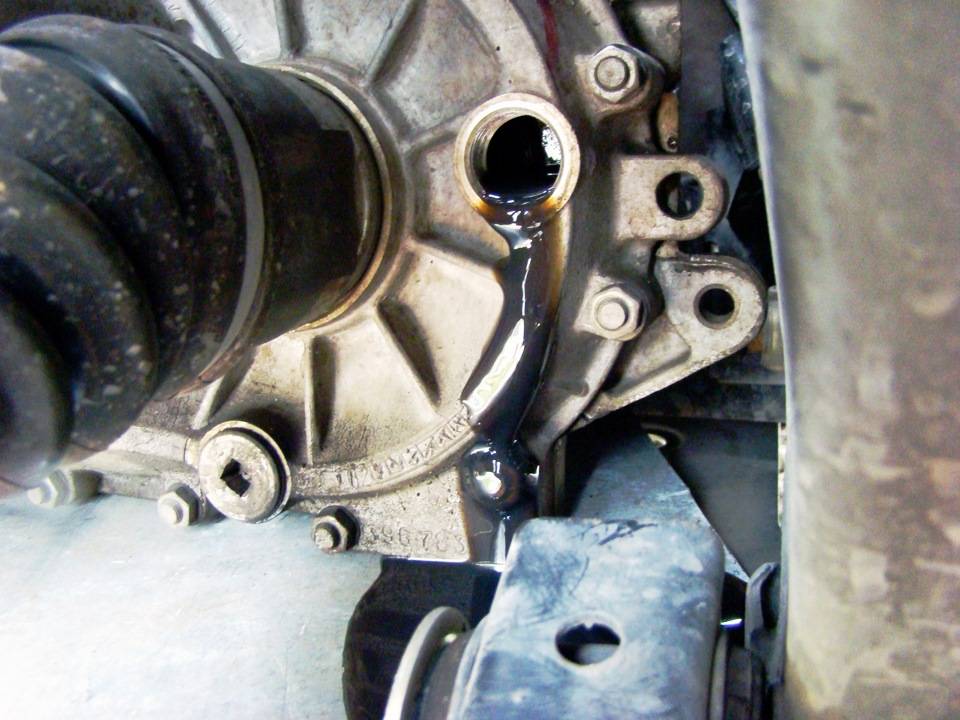 После изъятия отработанного смазочного материала отверстие закрывают. Поскольку заливное отверстие довольно маленькое, то новое трансмиссионное масло наливают при помощи шприца до уровня нижней кромки.