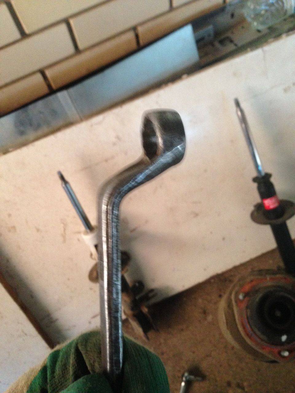7. После того, как вы стянете пружину, и она начнет свободно двигаться, вам понадобится еще один спец инструмент, а именно спецключ для откручивания (и впоследствии закручивания нового) штока аммортизатора к опоре стойки. Без него, поверьте, никуда. Мы взяли ключ от аммиков восьмерки. Не самое удачное решение, но других не было. Пришлось здесь помучаться чтобы открутить шток и закрутить новый. Если будет возможность прикупите кдюч поудобнее или пусть выточит какой-нибудь токарь.