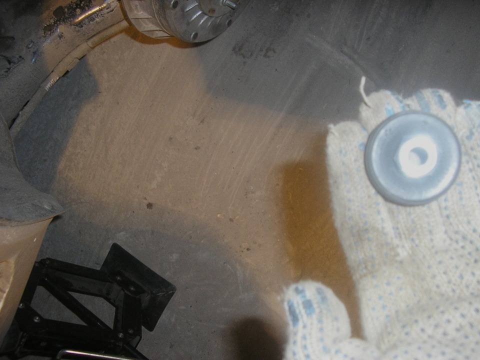 23. Откручиваем гайку со штока амортизатора, устанавливаем опорную шайбу вместе новой подушку крепления штока амортизатора.