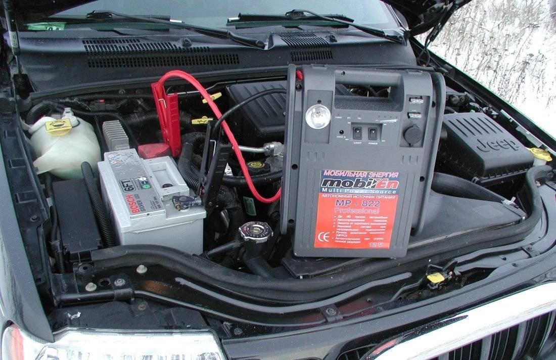 Второй вариант — пусковые устройства. Обычно они сами имеют батарейку. Такая штука может в состоянии дать на аккумулятор ток от 200 А, тем самым прокрутив стартер и двигатель запустится. Бывает очень полезно, когда зимой АКБ села, а ехать нужно срочно. Но учтите, что после такого запуска аккумулятор моментально не зарядиться, даже если он исправен. Заглушите мотор после 10 минут езды — доставайте пусковое снова.