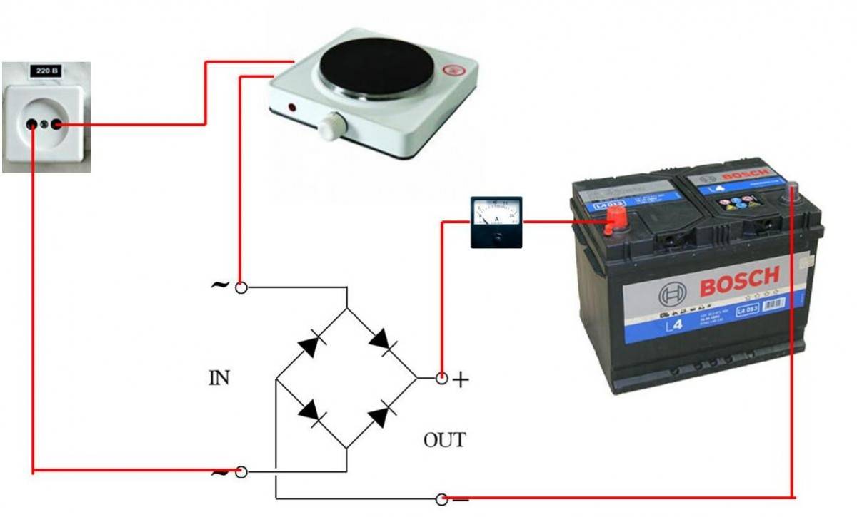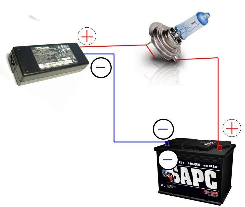 Пример схемы подключения зарядки шуруповерта к АКБ автомобиля