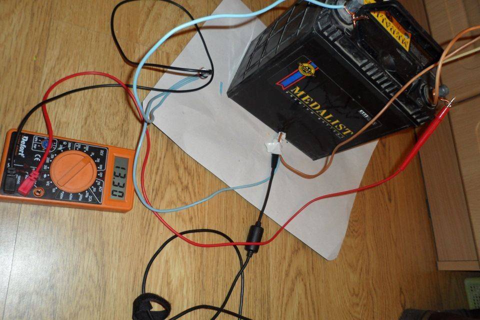 При этом надо контролировать и силу тока (это можно сделать по штатному амперметру). Она должна быть в пределах 0,1 от емкости АКБ (если батарея не очень разряжена). Верность данных встроенного прибора можно проверить внешним амперметром (например, мультиметром).