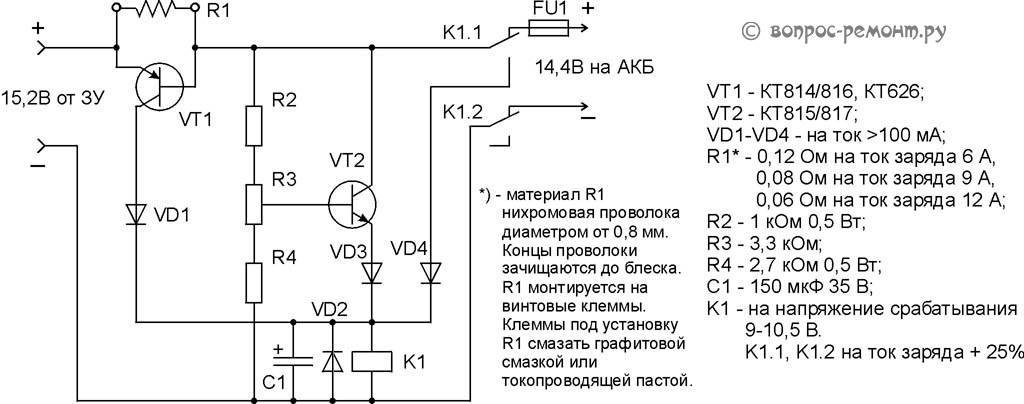 Простая схема защиты аккумулятора автомобиля от перезаряда, перенапряжения и переполюсовки